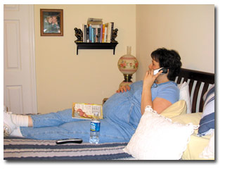 a little 'bedrest nest' for me. On some makeshift shelves by my